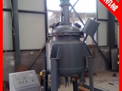 釜盖的转动与釜体的倾斜倒料及复位。首先将釜盖通过升降手轮及升降丝杠提起一定的高度,再松动吊臂上的紧固手扭,用手按下定位活动键釜盖就可以左右转动。再松动转动座上的紧固手扭,按住转动按钩转动倾倒手轮,使釜体保证一定的倒料角度,再松开转动按钩即可倒料。釜体需要复位时,摇动倾倒手轮,按住转动按钩,即可快速复位,为了不使釜体左右摆动,必须对倾倒手轮用手来控制速度达到复位为止。
